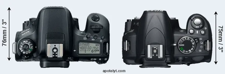 | 1. | Canon 77D | 131 mm | 100 mm | 76 mm | 540 g | 600 | n | Feb 2017 | US$ 899 | ebay.com | |