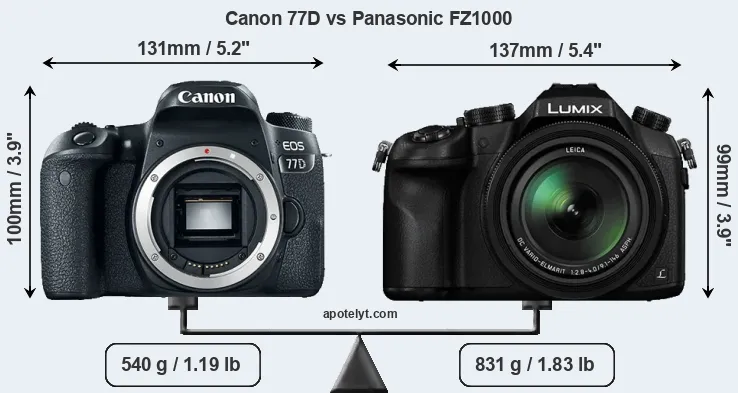 | Body Specs | Canon 77D | Panasonic FZ1000 |