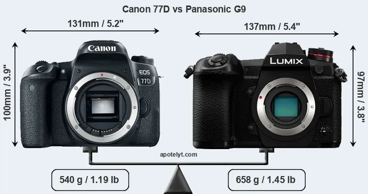 | Body Specs | Canon 77D | Panasonic G9 |