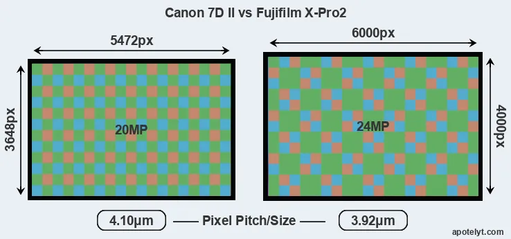 | Sensor Specs | Canon 7D II | Fujifilm X-Pro2 |