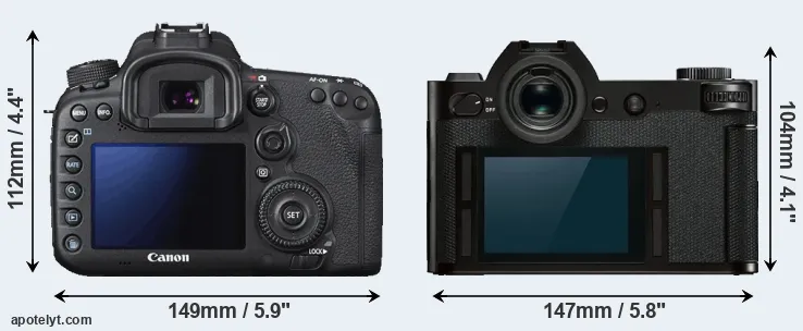 Going beyond this snapshot of core features and characteristics, what are the differences between the Canon EOS 7D Mark II and the Leica SL (Typ 601)? Which one should you buy? Read on to find out how these two cameras compare with respect to their body size, their imaging sensors, their shooting features, their input-output connections, and their reception by expert reviewers.