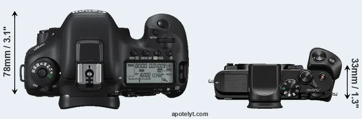 | 7. | Canon 70D | 139 mm | 104 mm | 79 mm | 755 g | 920 | Y | Jul 2013 | US$ 1 199 | ebay.com | |