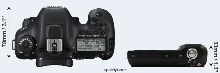 | 8. | Canon 70D | 139 mm | 104 mm | 79 mm | 755 g | 920 | Y | Jul 2013 | US$ 1 199 | ebay.com | |