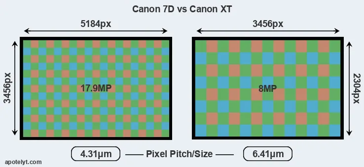 | Sensor Specs | Canon 7D | Canon XT |