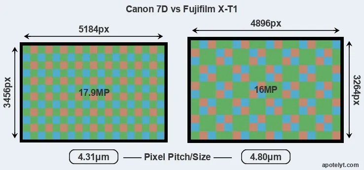 | Sensor Specs | Canon 7D | Fujifilm X-T1 |