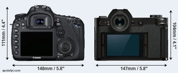 Going beyond this snapshot of core features and characteristics, what are the differences between the Canon EOS 7D and the Leica SL (Typ 601)? Which one should you buy? Read on to find out how these two cameras compare with respect to their body size, their imaging sensors, their shooting features, their input-output connections, and their reception by expert reviewers.