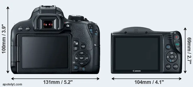 Going beyond this snapshot of core features and characteristics, what are the differences between the Canon EOS 800D and the Canon PowerShot SX400 IS? Which one should you buy? Read on to find out how these two cameras compare with respect to their body size, their imaging sensors, their shooting features, their input-output connections, and their reception by expert reviewers.