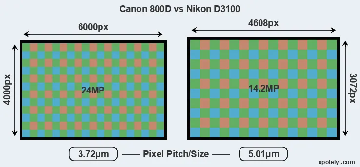 | Sensor Specs | Canon 800D | Nikon D3100 |