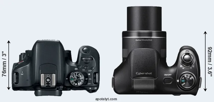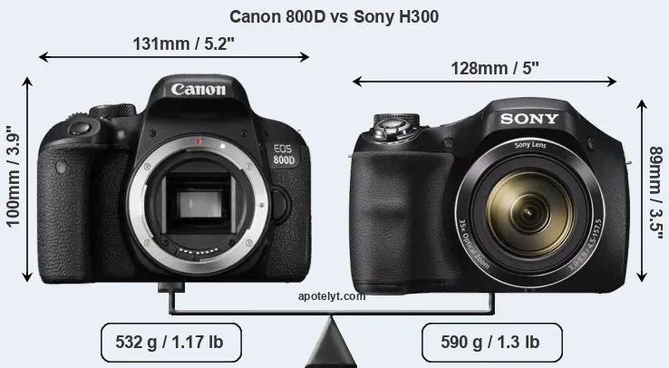 Size Canon 800D vs Sony H300