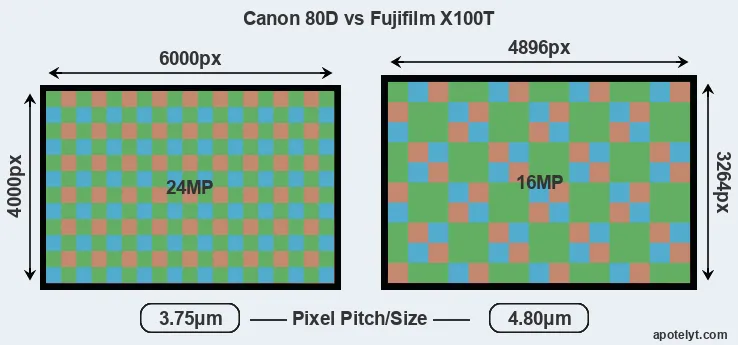 | Sensor Specs | Canon 80D | Fujifilm X100T |