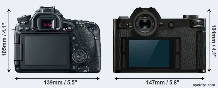Going beyond this snapshot of core features and characteristics, what are the differences between the Canon EOS 80D and the Leica SL (Typ 601)? Which one should you buy? Read on to find out how these two cameras compare with respect to their body size, their imaging sensors, their shooting features, their input-output connections, and their reception by expert reviewers.