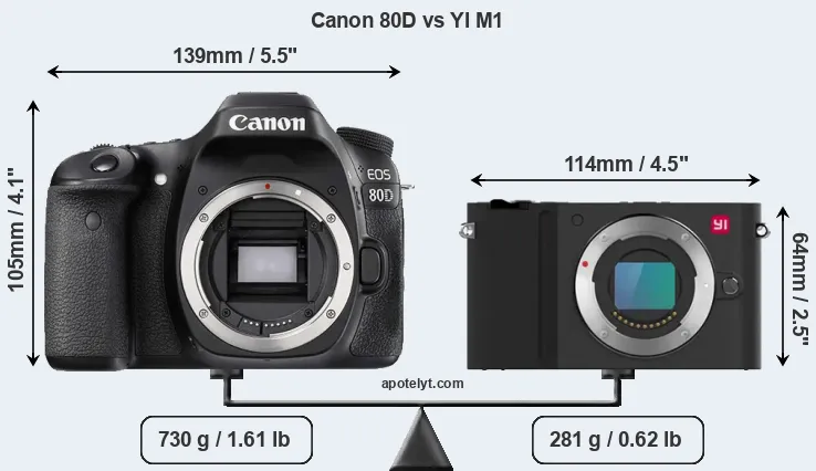 Size Canon 80D vs YI M1
