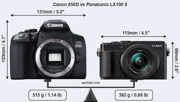 The above size and weight comparisons are to some extent incomplete and possibly misleading, as the LX100 II has a lens built in, whereas the 850D is an interchangeable lens camera that requires a separate lens. Attaching the latter will add extra weight and bulk to the setup. You can compare the optics available for the 850D and their specifications in the Canon EF Lens Catalog.