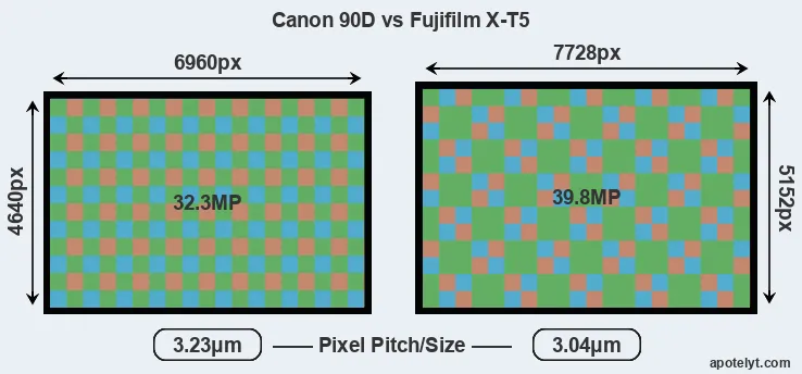 | Sensor Specs | Canon 90D | Fujifilm X-T5 |