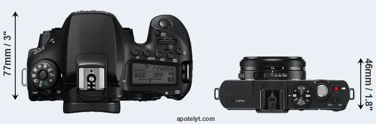 | 9. | Canon 80D | 139 mm | 105 mm | 79 mm | 730 g | 960 | Y | Feb 2016 | US$ 1 199 | ebay.com | |