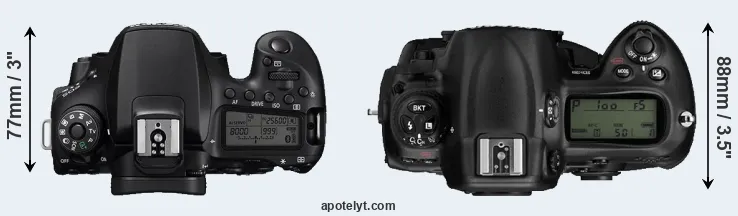 | 1. | Canon 90D | 141 mm | 105 mm | 77 mm | 701 g | 1300 | Y | Aug 2019 | US$ 1 199 | amazon.com | |