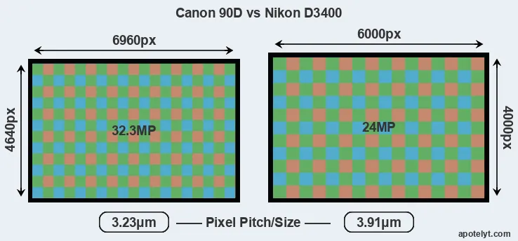 | Sensor Specs | Canon 90D | Nikon D3400 |