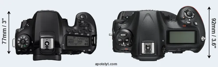 | 1. | Canon 90D | 141 mm | 105 mm | 77 mm | 701 g | 1300 | Y | Aug 2019 | EUR 1 299 | amazon.com | |