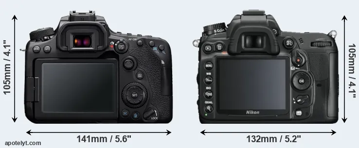 Going beyond this snapshot of core features and characteristics, what are the differences between the Canon EOS 90D and the Nikon D7000? Which one should you buy? Read on to find out how these two cameras compare with respect to their body size, their imaging sensors, their shooting features, their input-output connections, and their reception by expert reviewers.