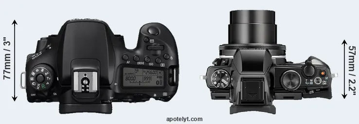 | 9. | Canon 80D | 139 mm | 105 mm | 79 mm | 730 g | 960 | Y | Feb 2016 | US$ 1 199 | ebay.com | |