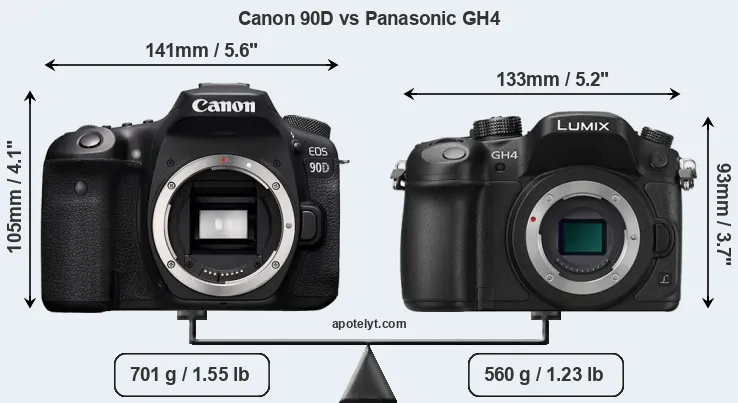 Size Canon 90D vs Panasonic GH4