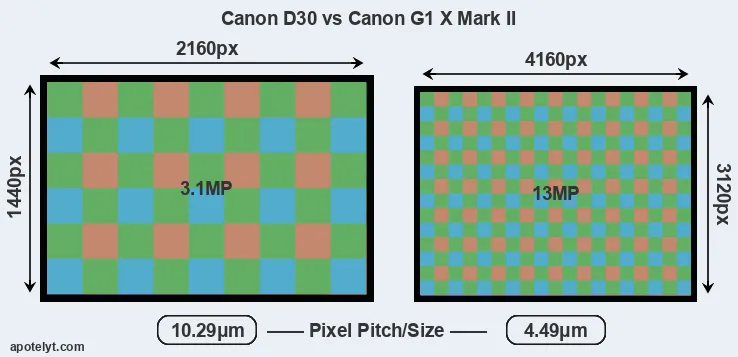 | Sensor Specs | Canon D30 | Canon G1 X Mark II |