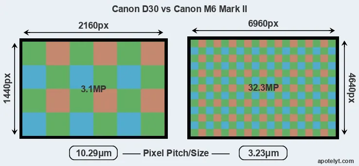 | Sensor Specs | Canon D30 | Canon M6 Mark II |