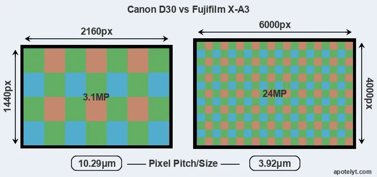 | Sensor Specs | Canon D30 | Fujifilm X-A3 |