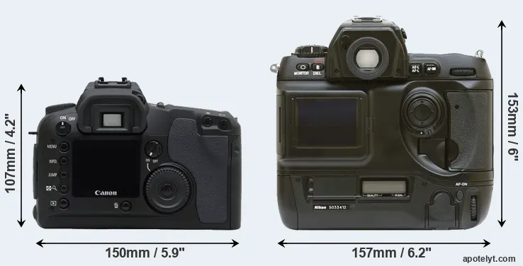 | 2. | Nikon D1 | 157 mm | 153 mm | 85 mm | 1100 g | .. | Y | Jun 1999 | US$ 5 499 | ebay.com | |