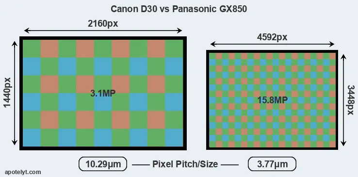 | Sensor Specs | Canon D30 | Panasonic GX850 |