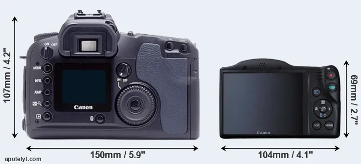 Going beyond this snapshot of core features and characteristics, what are the differences between the Canon EOS-D60 and the Canon PowerShot SX410 IS? Which one should you buy? Read on to find out how these two cameras compare with respect to their body size, their imaging sensors, their shooting features, their input-output connections, and their reception by expert reviewers.