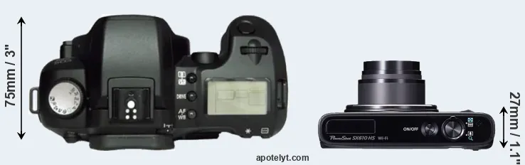 The above size and weight comparisons are to some extent incomplete and possibly misleading, as the SX610 has a lens built in, whereas the D60 is an interchangeable lens camera that requires a separate lens. Attaching the latter will add extra weight and bulk to the setup. You can compare the optics available for the D60 and their specifications in the Canon EF Lens Catalog.