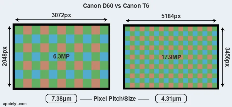 | Sensor Specs | Canon D60 | Canon T6 |