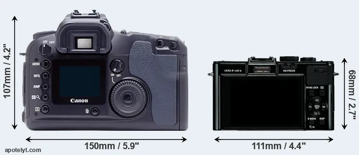 The above size and weight comparisons are to some extent incomplete and possibly misleading, as the D-LUX 6 has a lens built in, whereas the D60 is an interchangeable lens camera that requires a separate lens. Attaching the latter will add extra weight and bulk to the setup. You can compare the optics available for the D60 and their specifications in the Canon EF Lens Catalog.