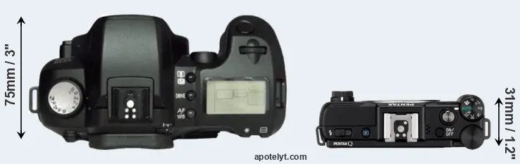 | 2. | Pentax Q | 98 mm | 57 mm | 31 mm | 180 g | 230 | n | Jun 2011 | US$ 649 | ebay.com | |
