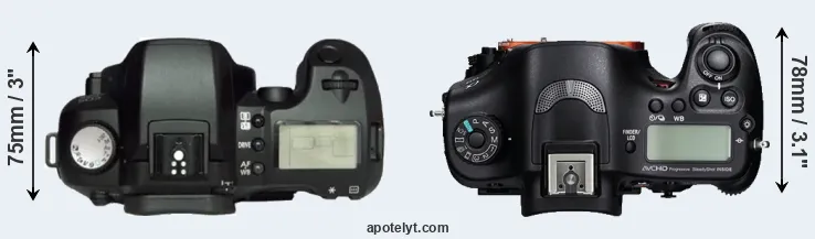 | 17. | Sony A900 | 156 mm | 117 mm | 82 mm | 895 g | 880 | Y | Sep 2008 | EUR 2 799 | ebay.com | |
