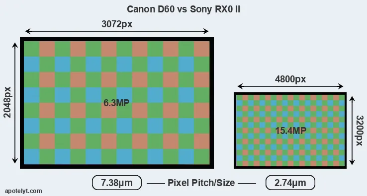 | Sensor Specs | Canon D60 | Sony RX0 II |