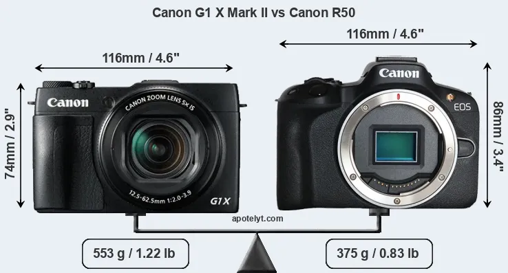 | Body Specs | Canon G1 X Mark II | Canon R50 |
