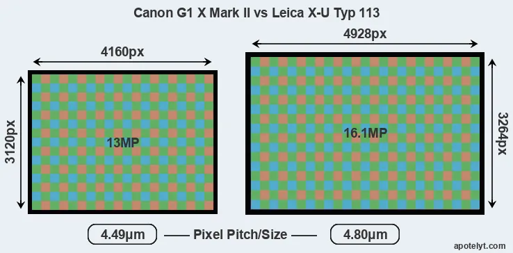 | Sensor Specs | Canon G1 X Mark II | Leica X-U Typ 113 |