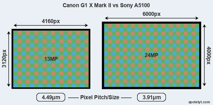 | Sensor Specs | Canon G1 X Mark II | Sony A5100 |