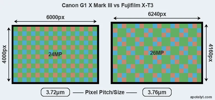 | Sensor Specs | Canon G1 X Mark III | Fujifilm X-T3 |