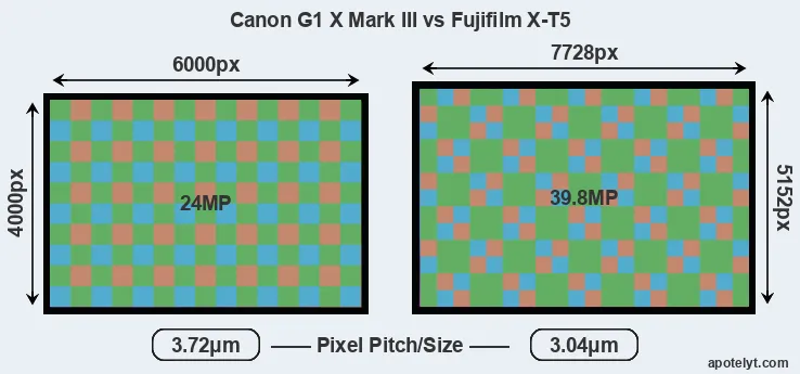 | Sensor Specs | Canon G1 X Mark III | Fujifilm X-T5 |