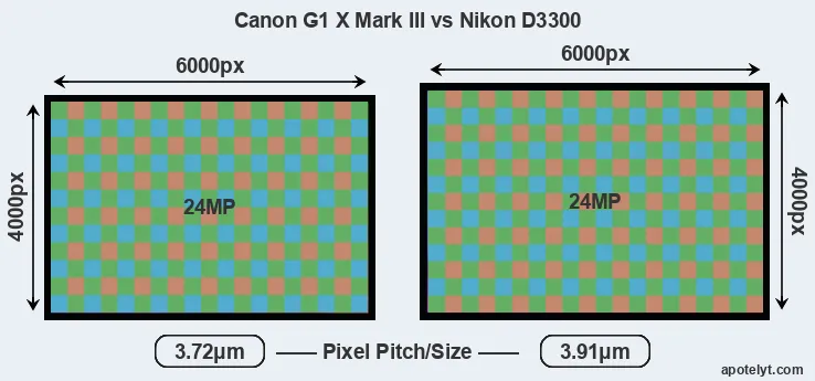 | Sensor Specs | Canon G1 X Mark III | Nikon D3300 |