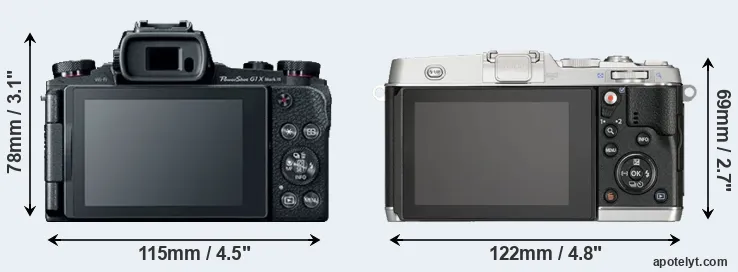 | Screen Specs | Canon G1 X Mark III | Olympus E-P5 |