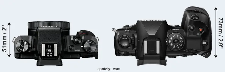The above size and weight comparisons are to some extent incomplete and possibly misleading, as the G1X Mark III has a lens built in, whereas the OM-1 is an interchangeable lens camera that requires a separate lens. Attaching the latter will add extra weight and bulk to the setup. You can compare the optics available for the OM-1 and their specifications in the Micro Four Thirds Lens Catalog.