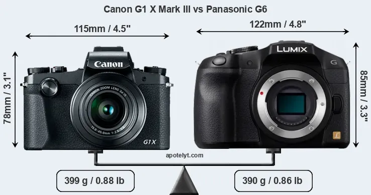 Specifications: Canon G1 X Mark III vs Panasonic G6