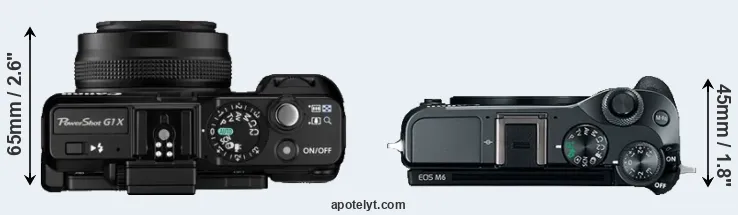 The above size and weight comparisons are to some extent incomplete and possibly misleading, as the G1X has a lens built in, whereas the M6 is an interchangeable lens camera that requires a separate lens. Attaching the latter will add extra weight and bulk to the setup.