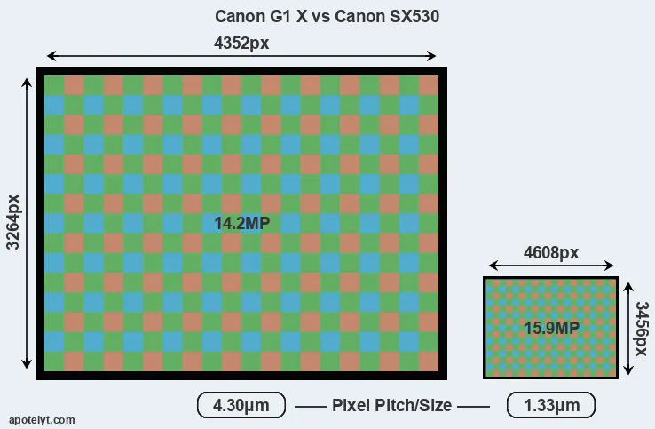 | Sensor Specs | Canon G1 X | Canon SX530 |