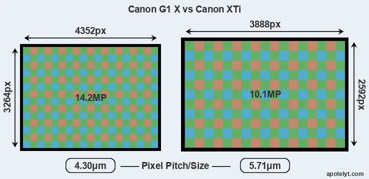 | Sensor Specs | Canon G1 X | Canon XTi |