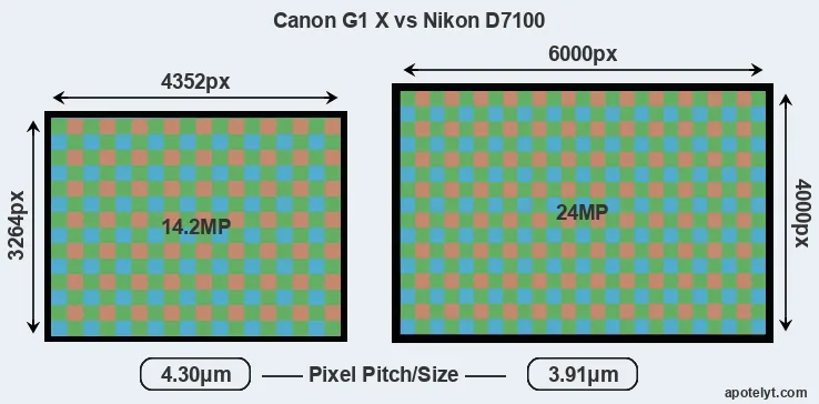 | Sensor Specs | Canon G1 X | Nikon D7100 |